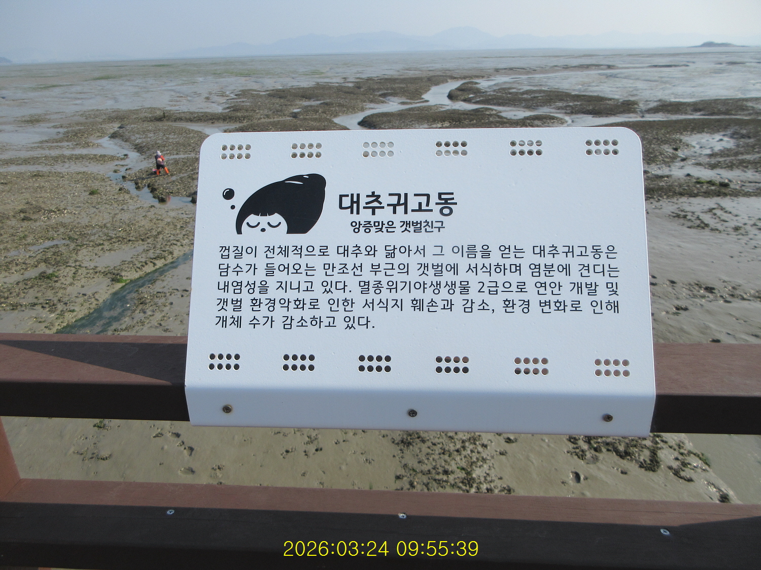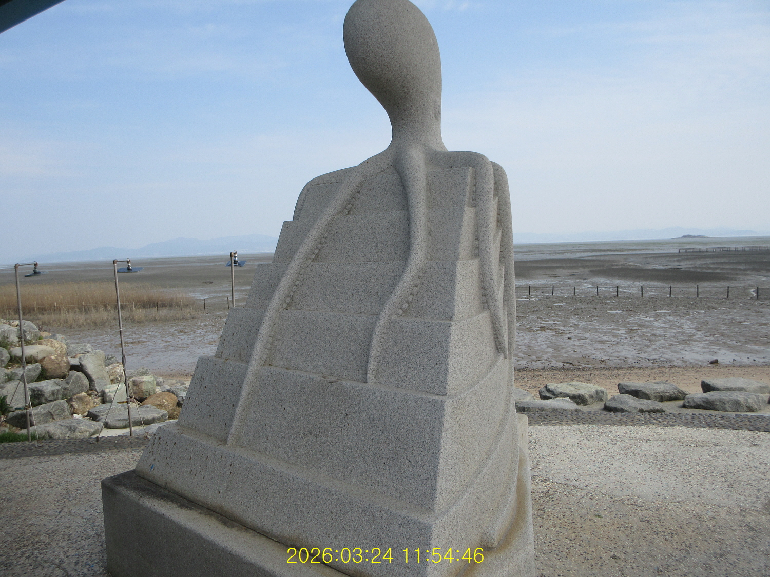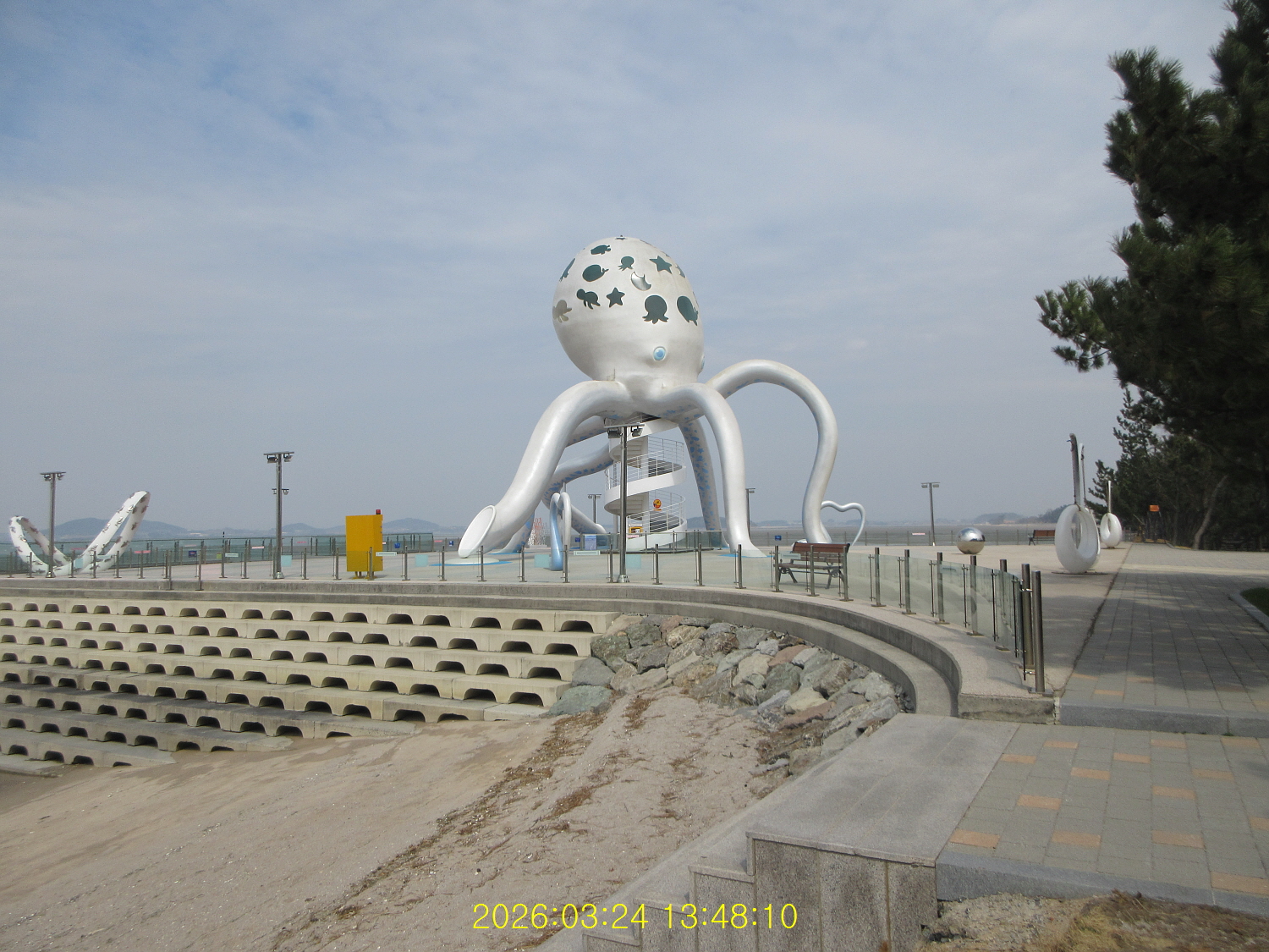 0.답사코스:순천출발07:45-무안황토갯벌랜드 주차장09:44-무안갯벌다리09:44-바다헌장비09:49-가입마을 해안가10:11-무안황토갯벌랜드 회귀11:39-무안 낙지, 농게 조형물11:48-주차장11:57-수암정 점심 (12:07-12:50)-무안낙지공원 주차장13:17-낙지조형물 전망대13:18-해안가 소나무숲 산책 (13:21-13:48)-노을길 야영장(13:50-14:00)-신안 압해도-암태도 천사대교 - 암태도 신석항 15:09.