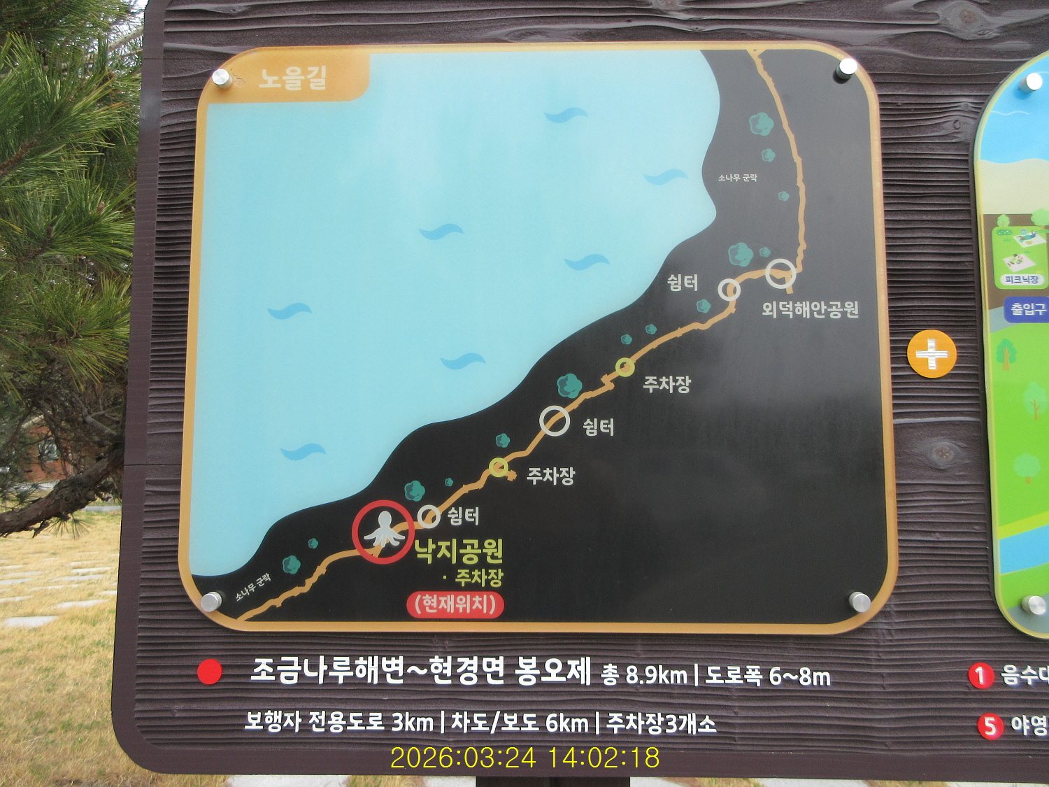 ▲해안가에서 도로따라 낙지공원으로 회귀한다