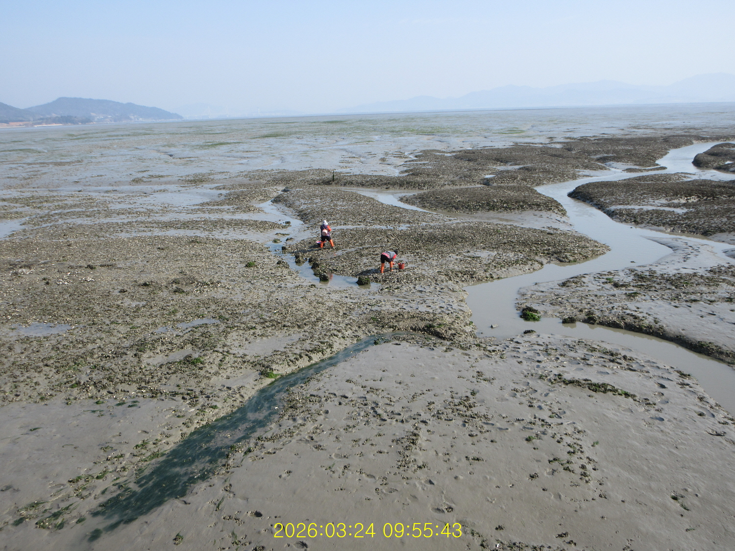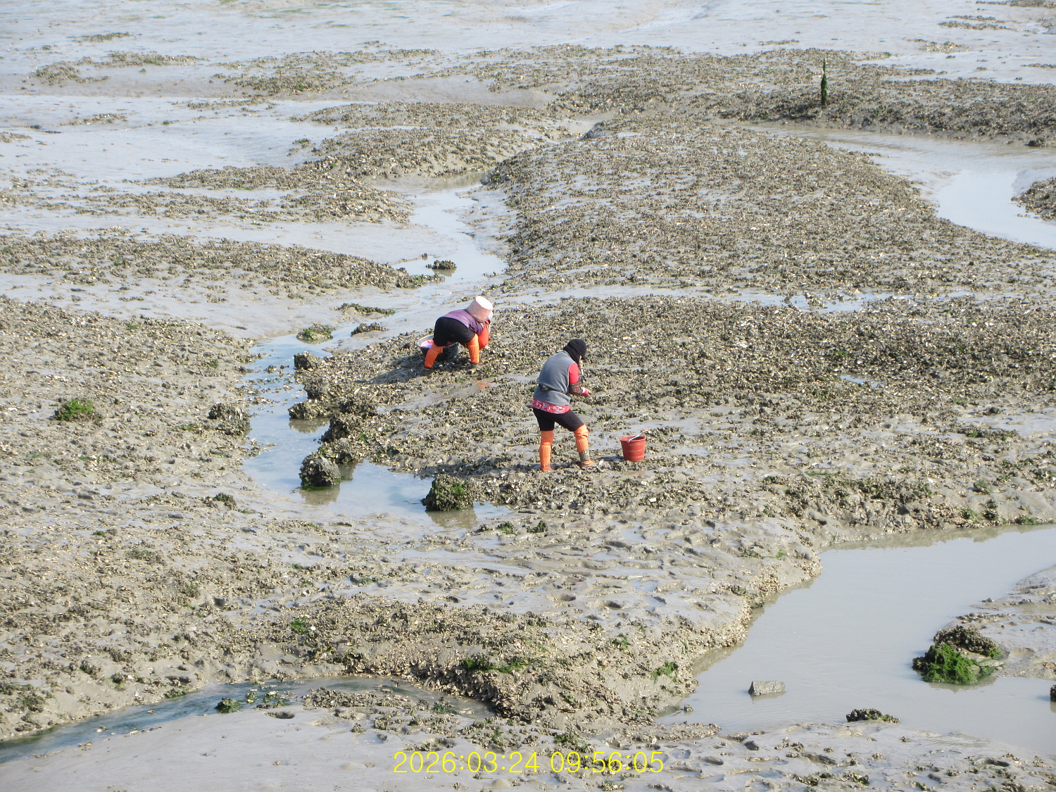 ▲▼썰물때라 아낙네들이 무엇을 채취하고있다