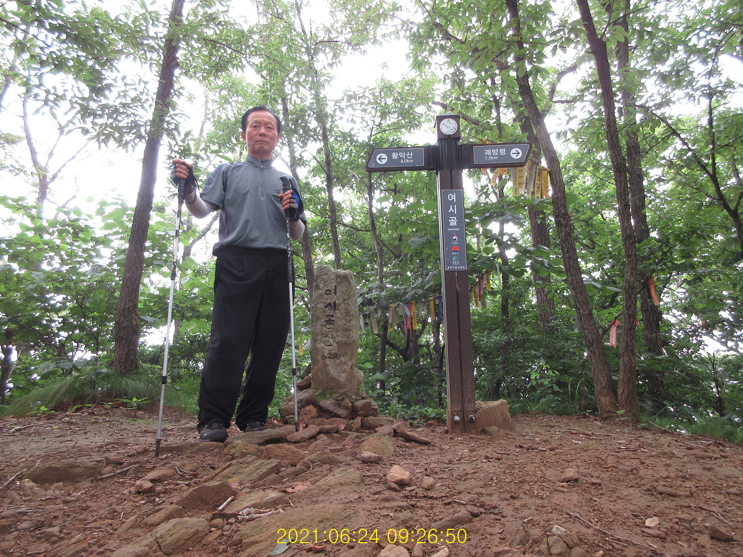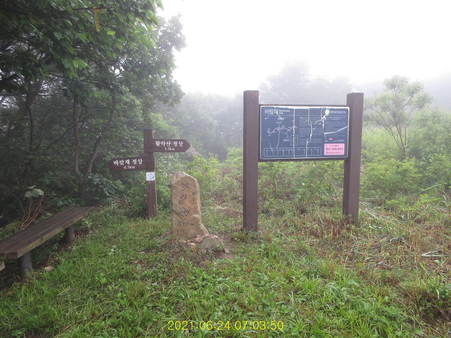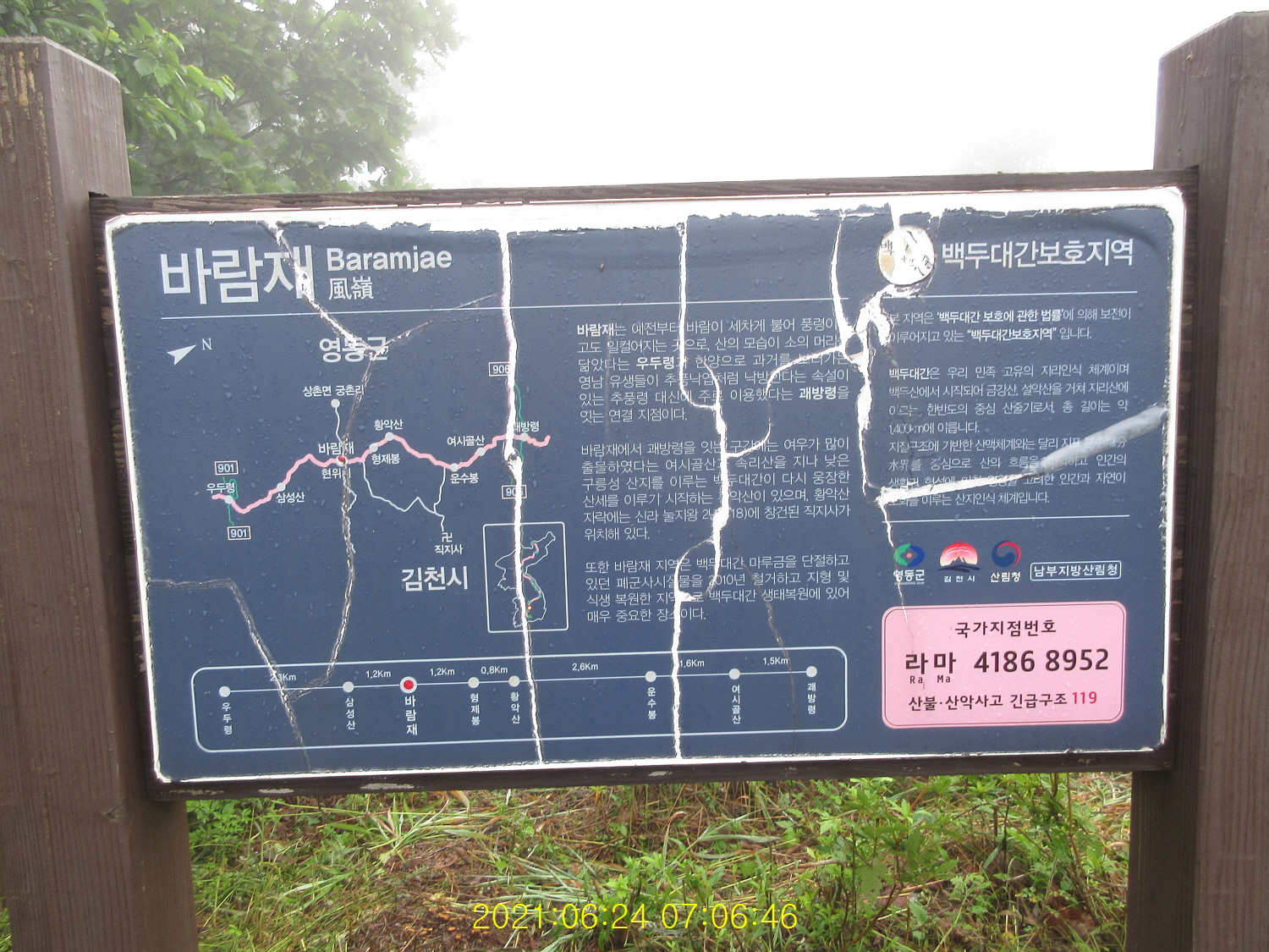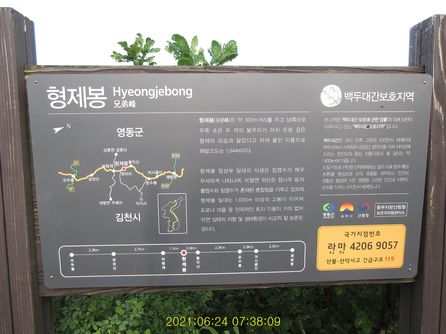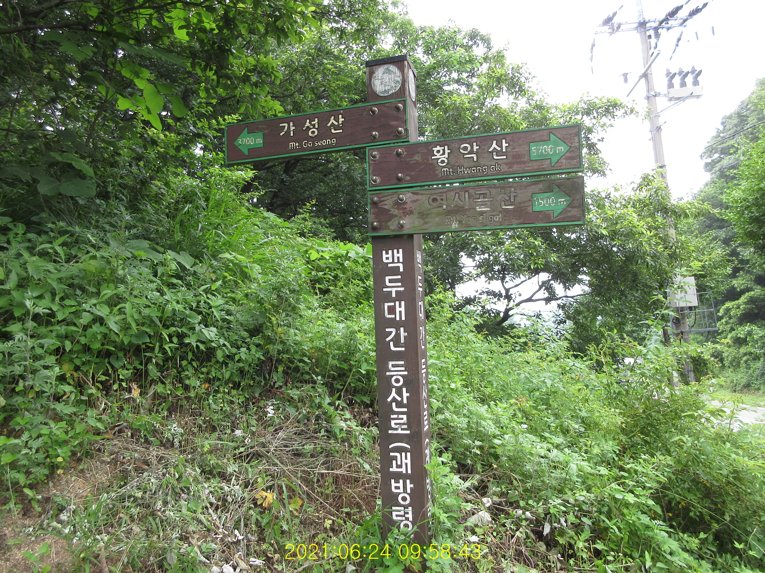 0.산행코스:우두령 05:12-산행시작05:18-삼성산06:06-우두령06:33-여정봉06:38- 바람재정상06:48-바람재07:03-신선봉 갈림길07:26-형제봉07:37-황악산 07:55-선유봉(1045m) 08:12- 백운봉08:35-직지사 갈림길08:45-운수봉08:52-여시굴 09:11 - 여시골산09:24-괘방령09:56-가성산11:35-장군봉12:10-점심(12:20-12:35)- 눌의산 13:05-폐헬기장 13:18-눌의산 등산안내도13:58-고속도로 지하도14:08- 추풍령14:24.