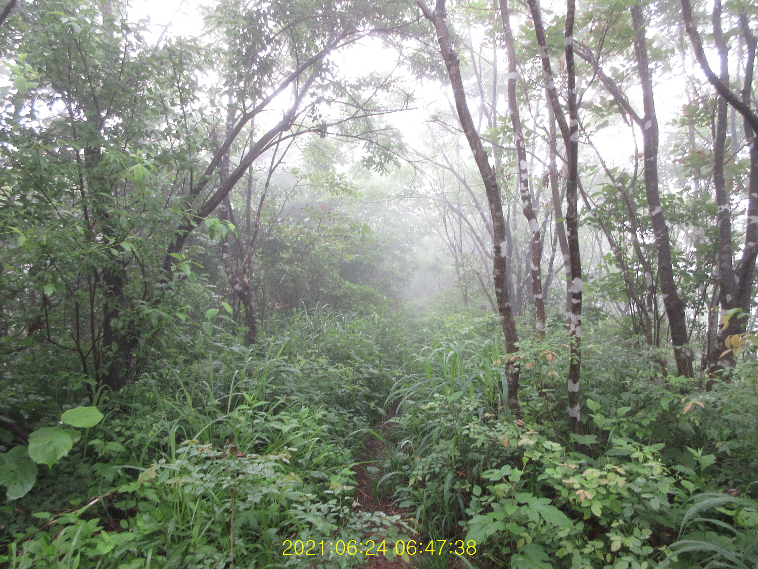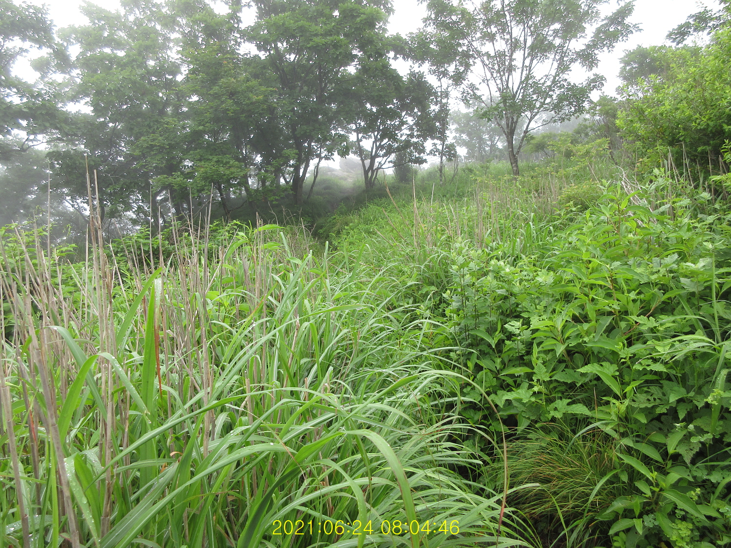 ▲풀속을 헤치며 걸으나 바지는 이슬로 젖어 신발속이 질퍽거린다