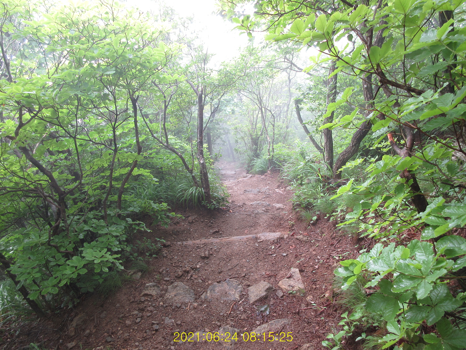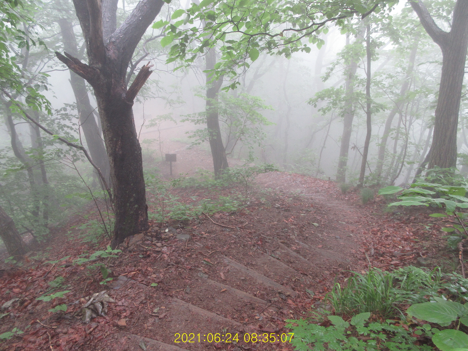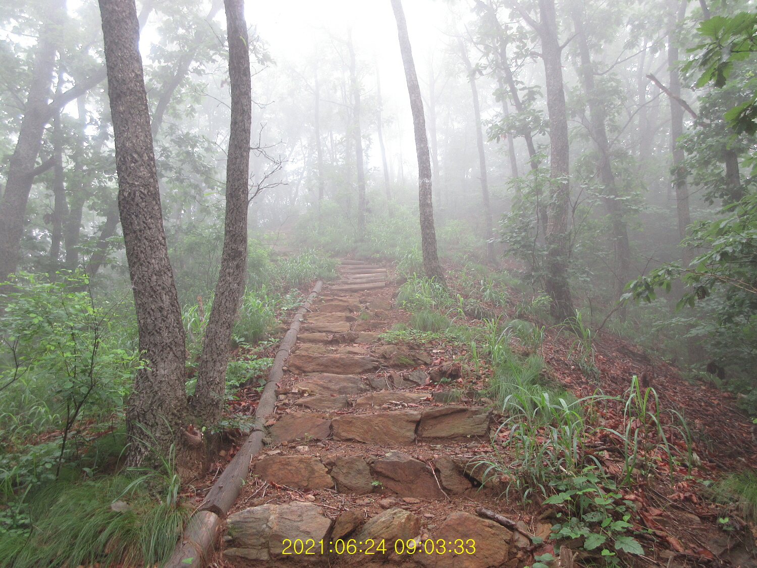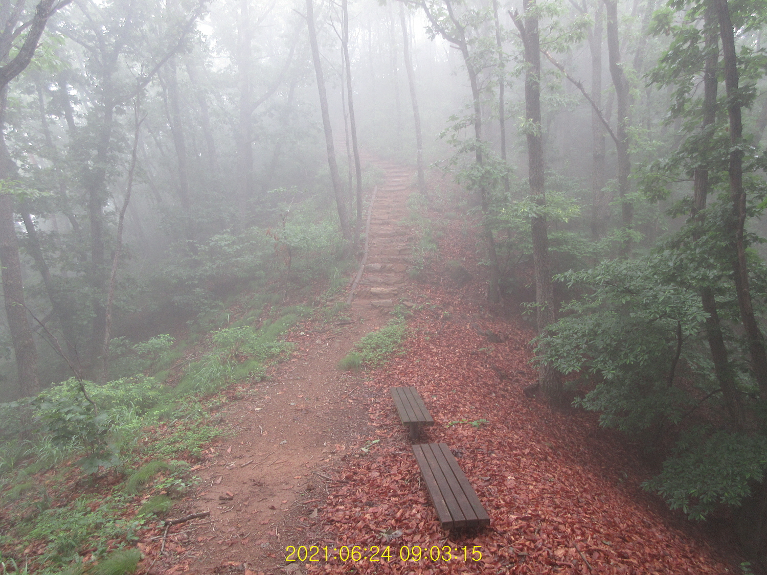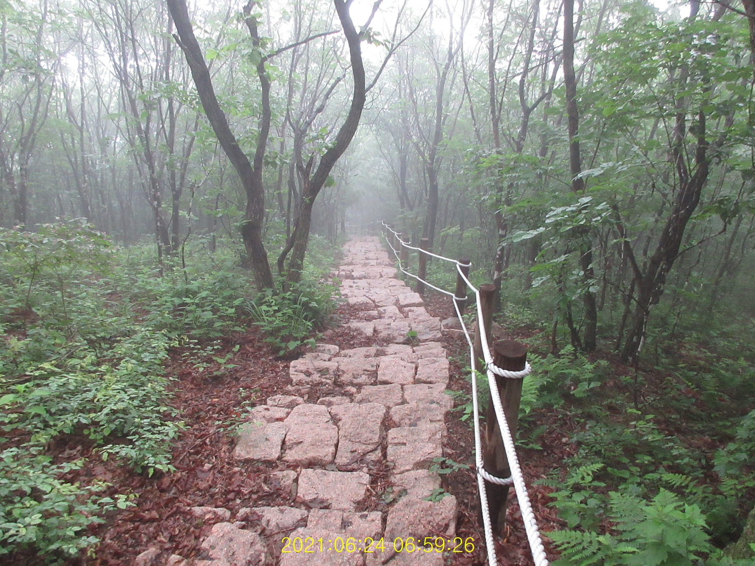 ▲ 멀리 안개속에 가성산이 기다리고있다.