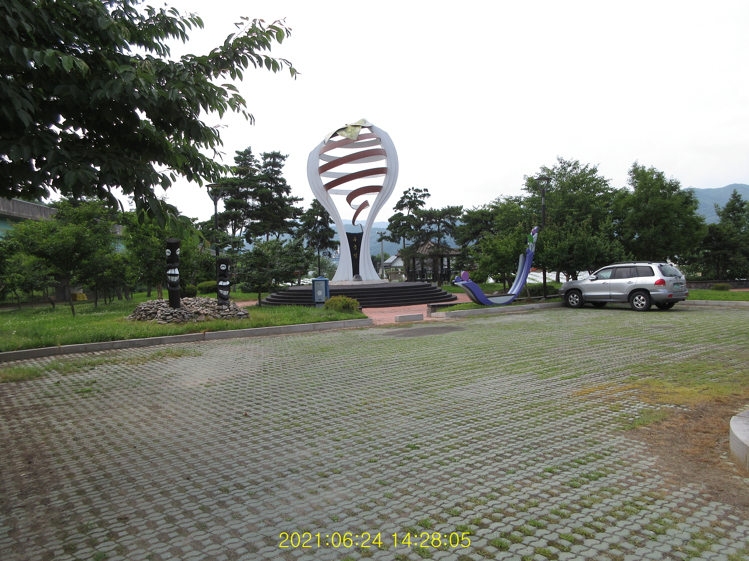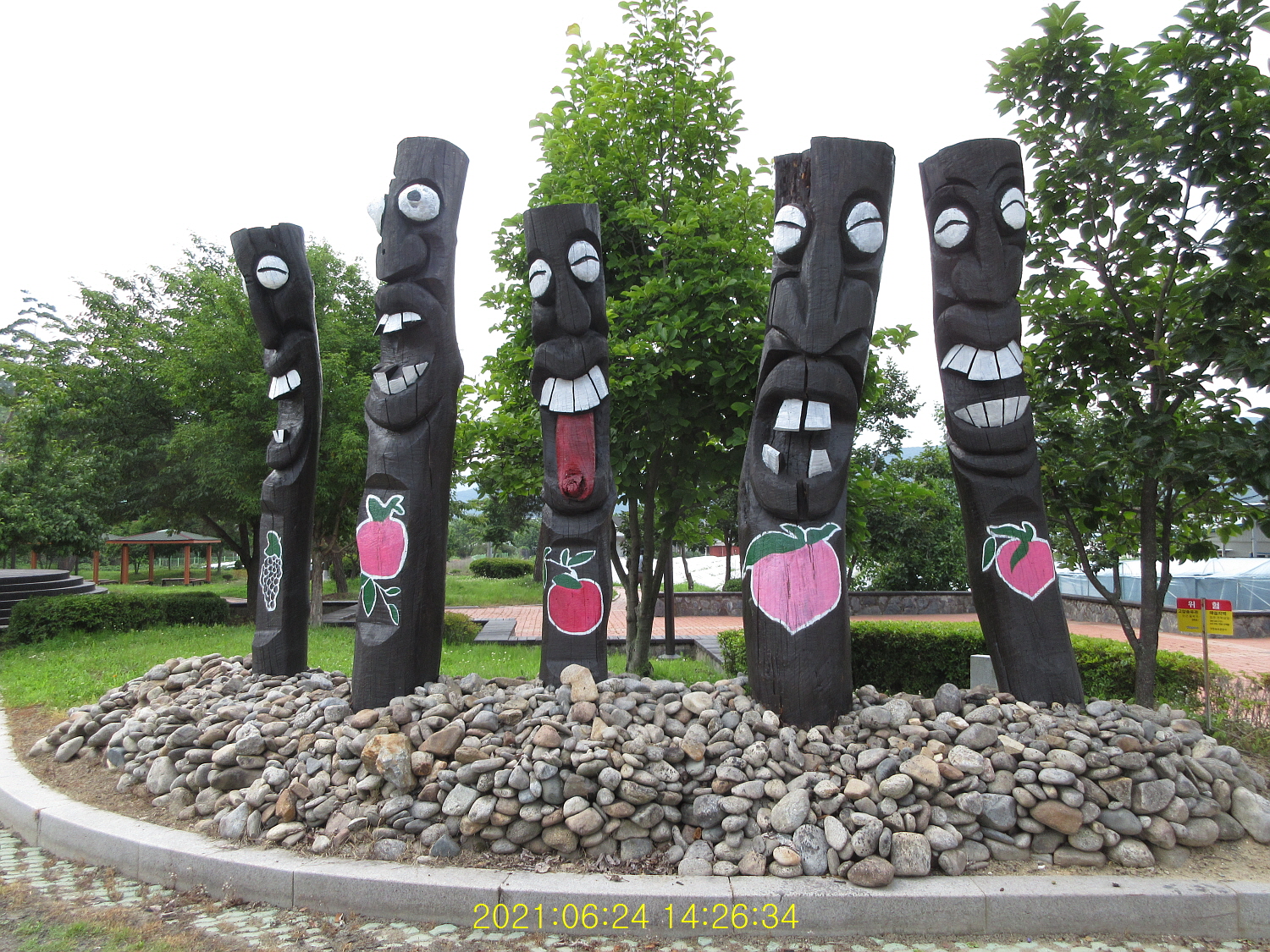 ▲ 이랑탑 (영동군의 국악과 감 포도의 형상의 조형물)