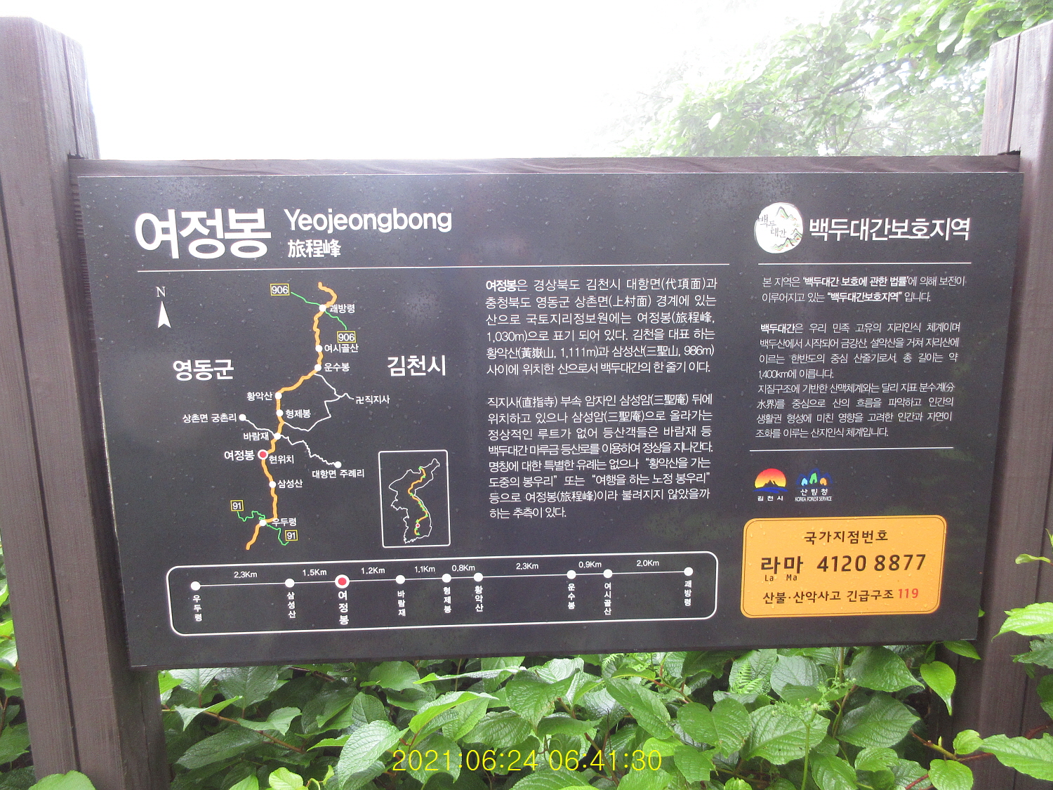 0.산행지:김천시 영동군 우두령(720m) 삼성산(986m) 여정봉(1,032.1m) 형제봉(1,044m)