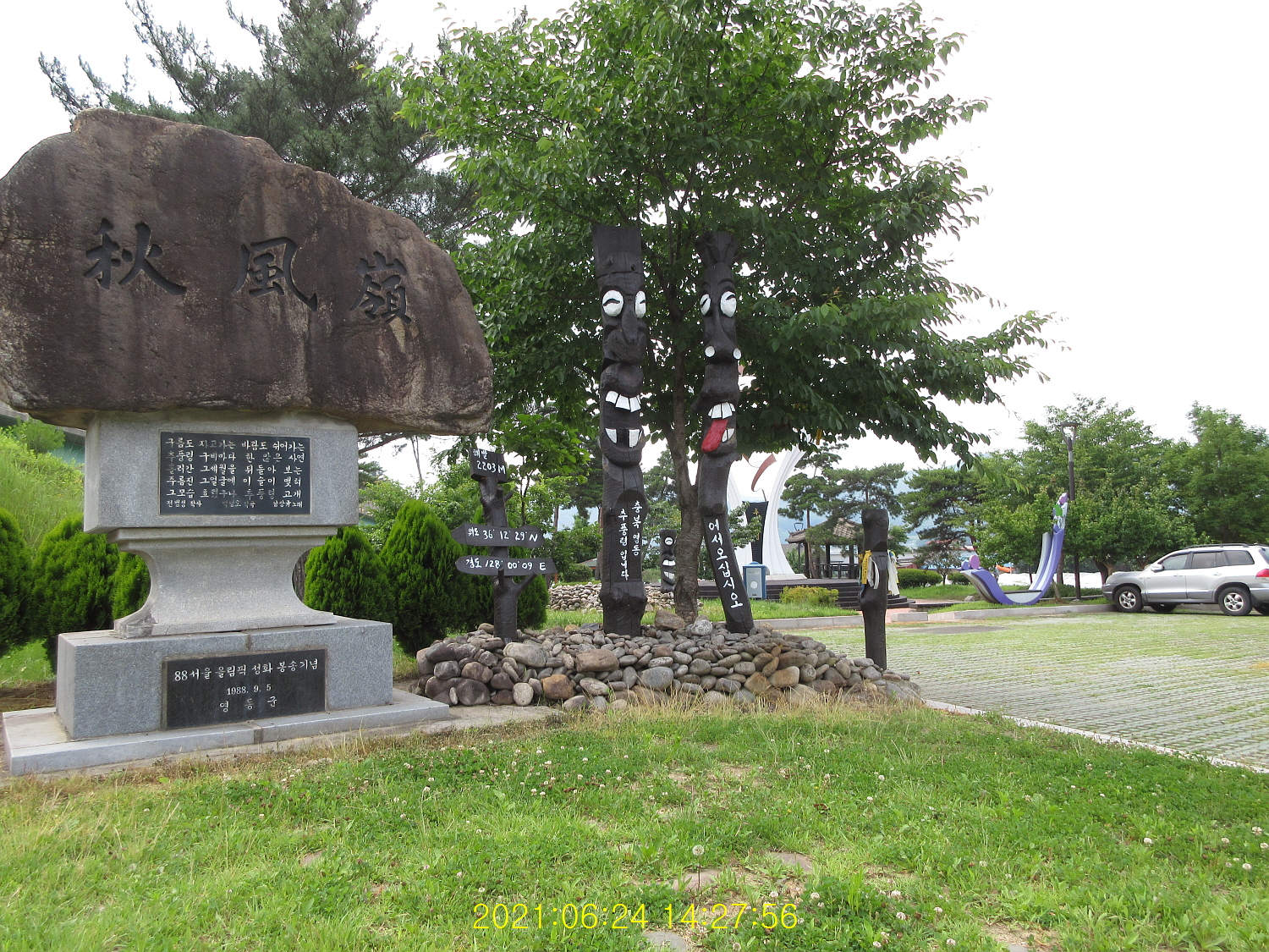 한 가을바람이 불어 추풍(秋風)이라 불음. 추풍령 노래비.