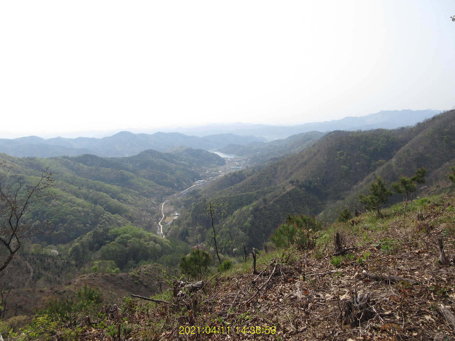 ▲벌목지대에서 뒤돌아 본 계곡따라 하산한 방향
