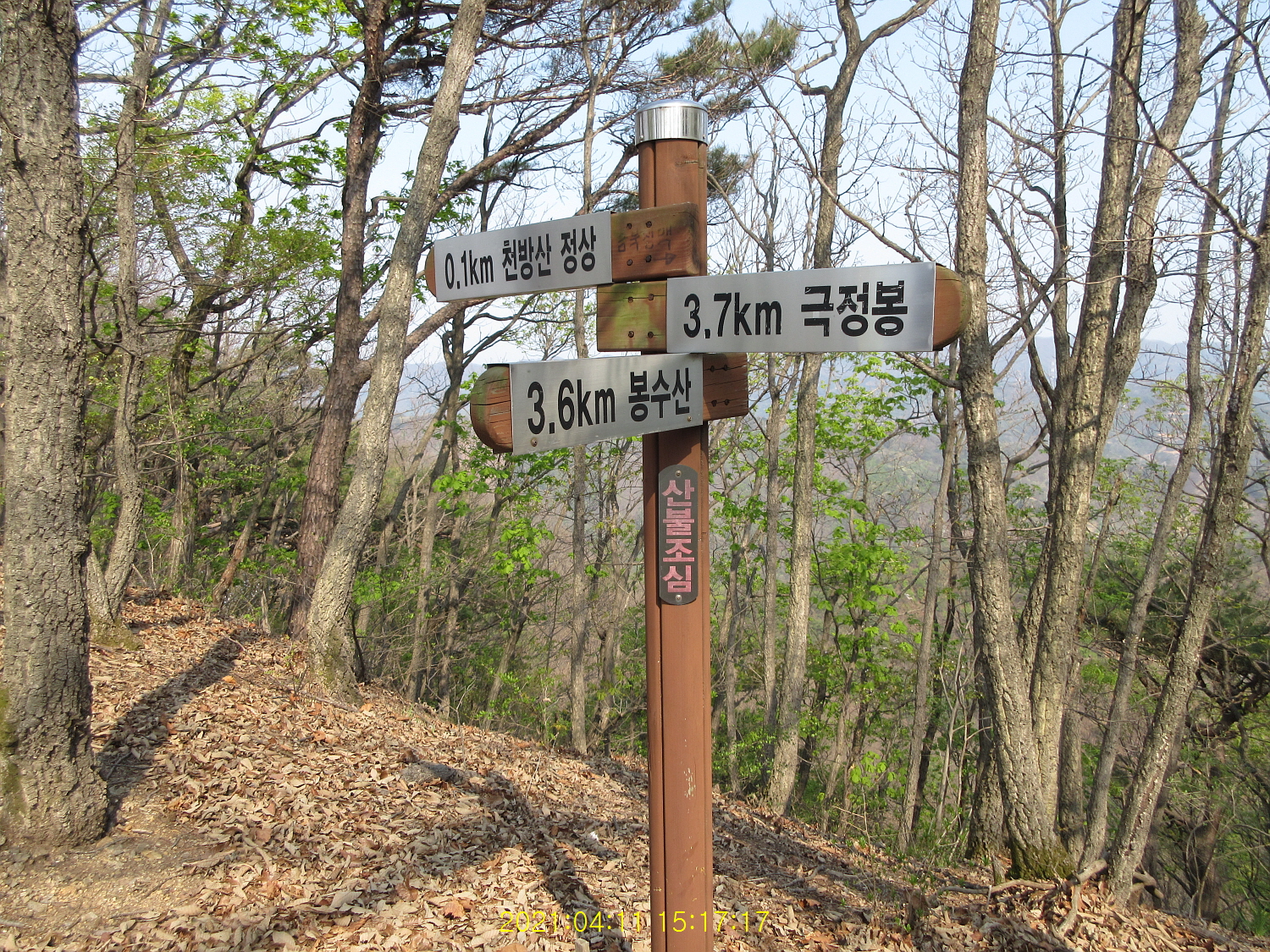 ▲ 천방산 정상 갈림길로 회귀하여 극정봉 방향으로 진행